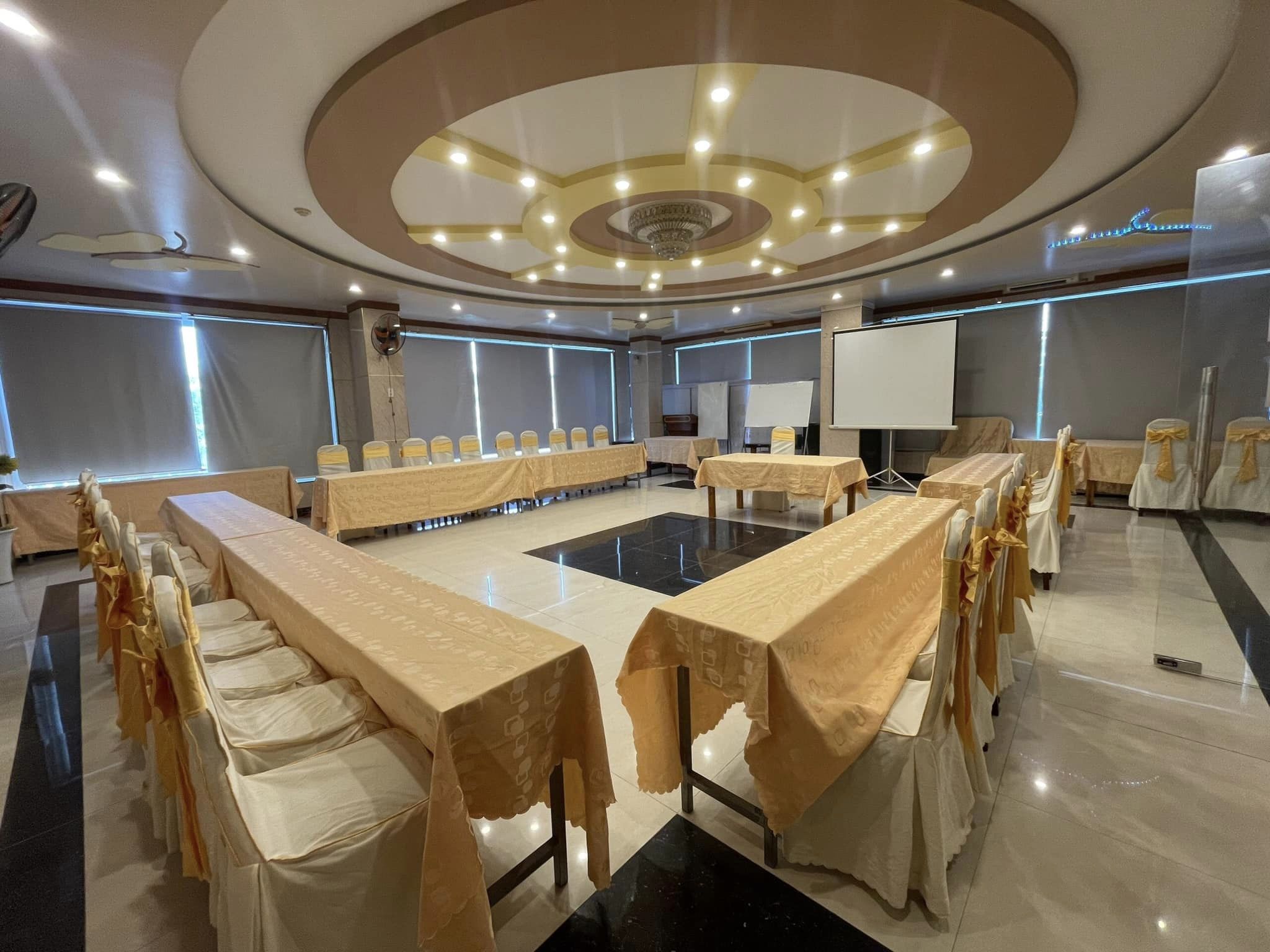 Thiết bị hiện đại: Để đảm bảo mọi sự kiện diễn ra một cách suôn sẻ, sảnh hội nghị được trang bị đầy đủ thiết bị âm thanh, ánh sáng và trình chiếu hiện đại nhất, bao gồm cả máy chiếu, màn hình LED, micro, và hệ thống âm thanh chất lượng.
