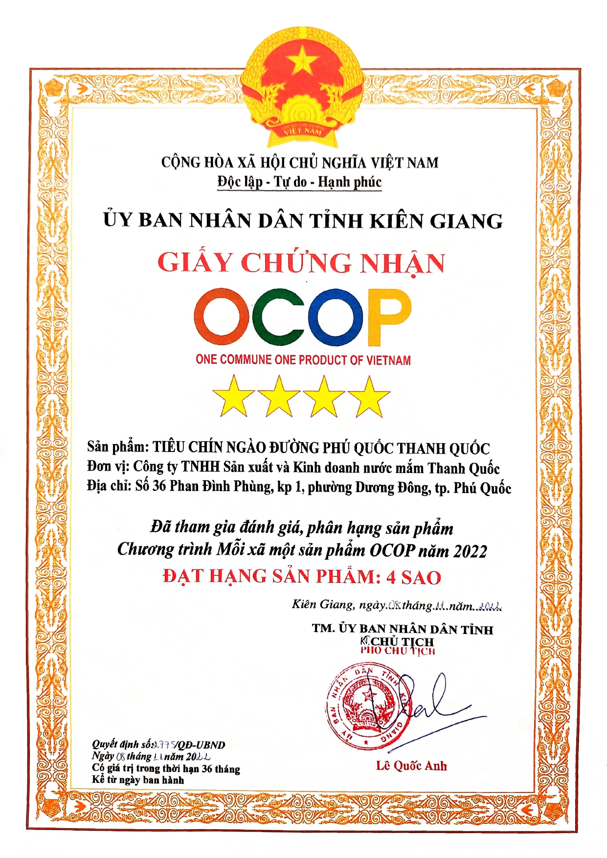 Công ty TNHH Sản Xuất Kinh Doanh Nước Mắm Thanh Quốc tự hào là một trong những công ty đầu tiên sản xuất nước mắm Phúc Quốc của Việt Nam có bề dày lịch sử hơn 100 năm với 4 thế hệ kế thừa truyền thống