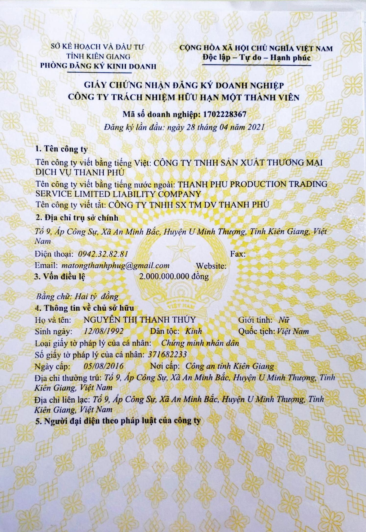 Công Ty TNHH Sản Xuất Thương Mại Dịch Vụ Thanh Phú