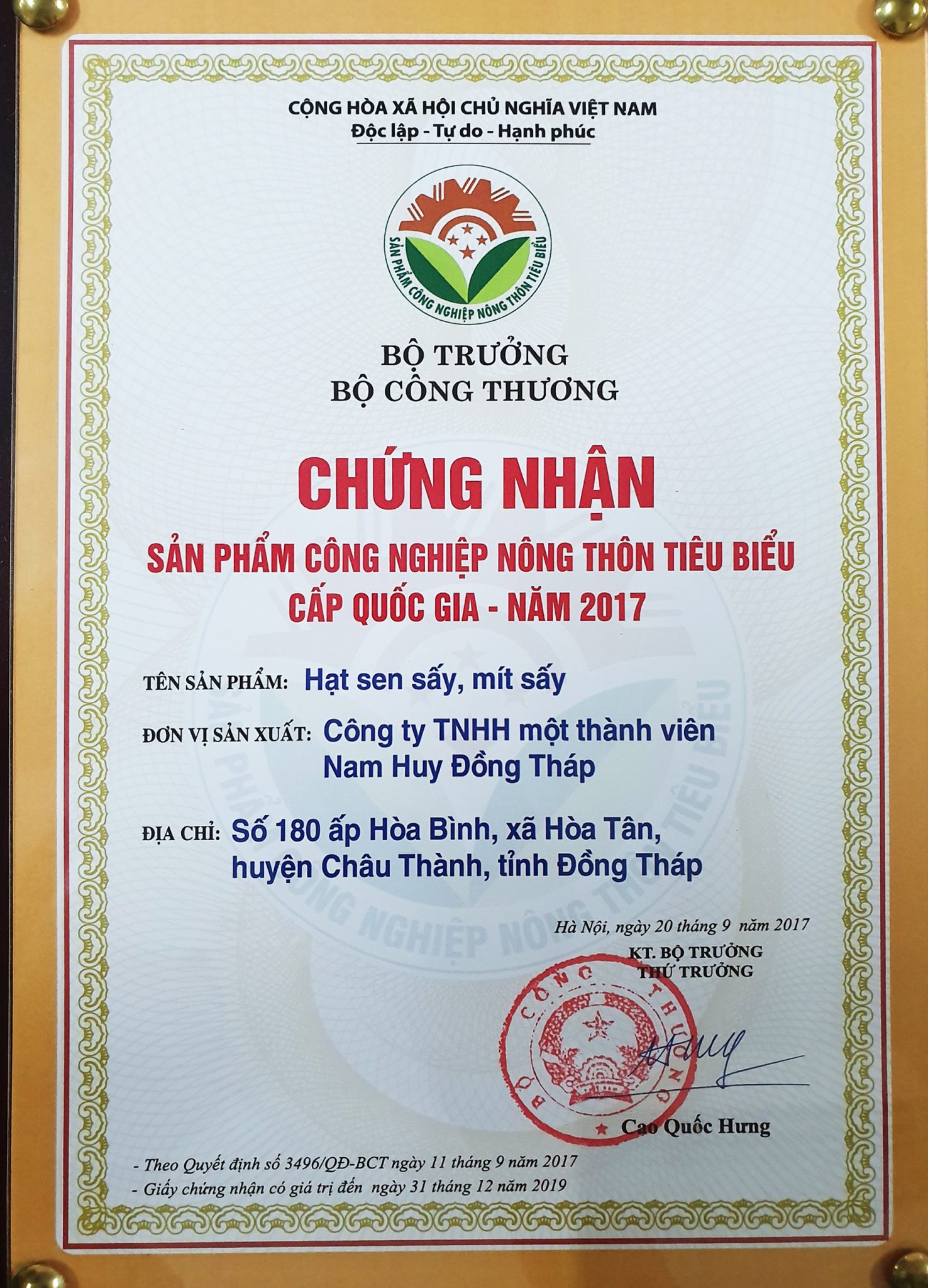 Công Ty TNHH MTV Nam Huy Đông Thap Tư Hao Ban Săc Trai Cây Sây Đia Phương